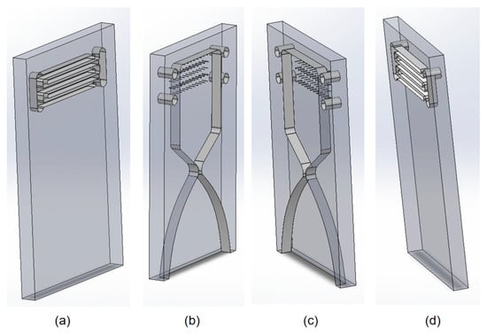 CAD designs of (a) Layer 1; (b) Layer 2; (c) Layer 3; and (d) Layer 4.