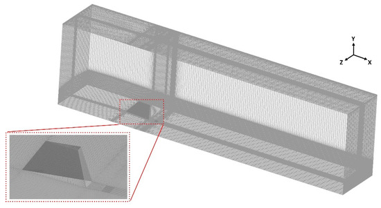 As shown in Figure 1, the supersonic combustor is a rectangular-section free channel with a total length of 119 mm, and the inlet section has dimensions of 20 mm (width) by 32 mm (height). Building upon existing research [28,30,38], a square orifice with a side length (a) of 1.24 mm is selected for the multi-pylon combination study, which is equivalent in area to a circular orifice with a diameter (d) of 1.4 mm. The pylon dimensions are specified as follows: length (L) of seven, width (W) of d, height (H) of 4d, pylon leading edge inclination angle of 49°, and trailing edge top width (M) of 0.5d. A baseline case is established for validation, where the orifice is positioned 35 mm from the entrance of the combustor, and the distance between the pylons and the orifice is Xp = 2d [29]. The mesh modelling is done by using Ansys ICEM-CFD (2020). Structured meshing is applied to the entire computational domain, as Figure 2 illustrates, with grid refinement near the walls, pylons, and orifice. The first layer of mesh near the walls reaches a size of 1 × 10−6 m to accurately capture the flow near the wall and ensure that the computation can converge stably. Through grid refinement the generated mesh satisfies the criteria for numerical accuracy, with a Jacobian ratio exceeding 0.867 and orthogonal quality greater than 0.148 throughout the computational domain. Following a mesh convergence study, four different grid quantities, namely 1 million (Coarse), 2 million (Medium_1), 3 million (Medium_2), and 4 million (Fine), are set for the baseline case to ensure grid independence. Figure 3 presents numerical curves of the flammable mixture region [38] for different grid quantities (Af is the cross-section area with the equivalence ratio (Φ) between 0.4 and 5.5, Ai is the orifice area, and X is the distance from the cross-section to the entrance of the combustor). It can be observed that all the four grid quantities converge normally and the results with 3 million and 4 million grids are comparable. Considering the trade-off between simulation accuracy and computational cost, all cases adopt a grid quantity of around 3 million.