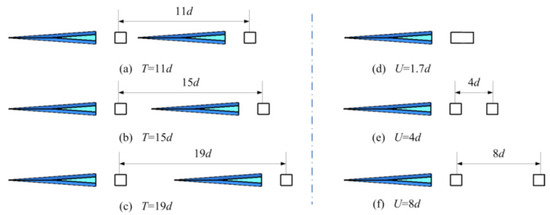Schematic diagrams of different multi-pylon configurations (S = 7d, T = 11d).