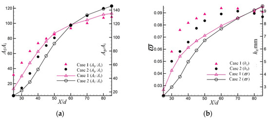 Combustor jet mass center height (a) and total pressure loss coefficient (b) for different cases.