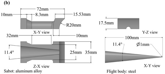 Schematic of the HVP, adapted from reference [22]: (a) HVP; and (b) the sabot and the flight body.