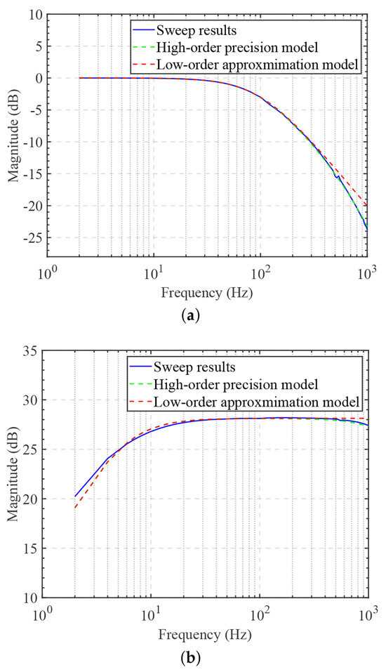Because of the intricate nature of the high-order model, adjusting the Kalman filter parameters is challenging. Consequently, by disregarding the high-frequency components arising from the backend amplification circuit, the low-order transfer function model, indicated by the red line, is approximated by
