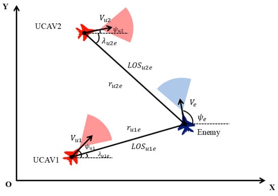Schematic diagram of the air combat situation between the enemy and UCAV.
