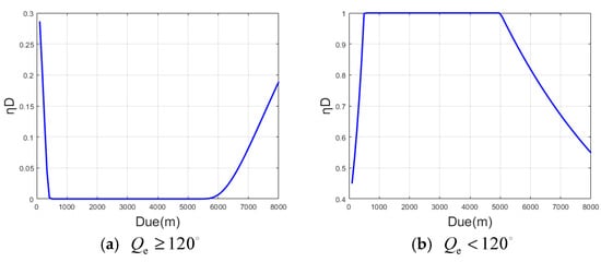 (a) Curve of variation of ηD with when ; (b) curve of variation of with when .