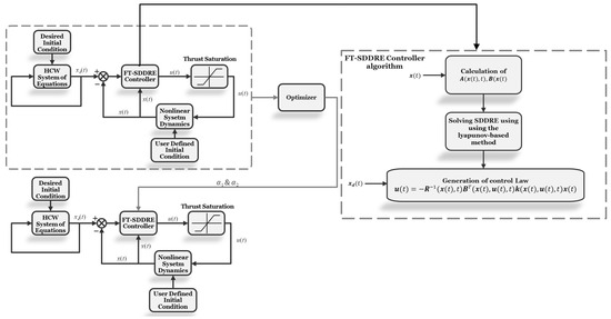 This section is devoted to applying the FT-SDDRE controller to the relative equations of motion. The design of an FT-SDDRE controller is an accurate process, starting with converting the nonlinear equations of motion into state-dependent form, known as SDC parameterization, which is detailed below.