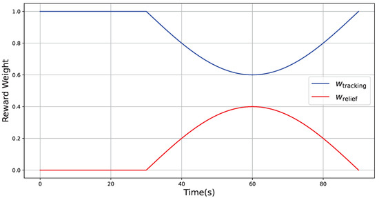 From Equations (48) and (49), it can be found that the reward weights are functions over time, eliminating the need for additional switching mechanisms to adjust the weights during transition windows. The time factor enables the weights to automatically and smoothly transition to the next phase within the time window, which represents one of the most significant findings of this study. As can be seen, tracking accuracy is emphasized in the initial stage, the middle stage begins to focus on load relief as the wind field intensifies, and the final stage gradually restores the emphasis on tracking accuracy while maintaining the effect of load relief after passing through the high-altitude wind region.