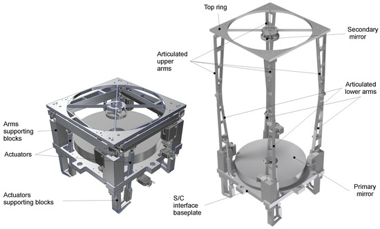 In the last few years, there has been an exponential growth of interest in small platforms in space, and this is based on several arguments. On one hand, small platforms allow for a reduction in the costs of an Earth Observing program devoted to the monitoring and control of the environment, making it economically affordable for nations, communities, and private companies without direct access to space. Additionally, they ease the possibility of using distributed systems in space, making use of more satellites flying in formation or as a constellation, for instance, to increase the temporal resolution for the observation of quasi-transient phenomena in local areas. On the other hand, remote sensing instrumentation (cameras and spectrometers) requiring high spatial resolution is quite demanding in terms of volume and mass. Indeed, large entrance pupils and long focal lengths represent a challenge for mini and micro-satellites. The identification of payloads capable of minimizing resource usage at launch, while still guaranteeing in-flight performance analogous to that of more “expensive” instruments, in terms of resources, is an extremely valuable benefit. Precision-deployable, stable optical telescopes that fit inside smaller, lower-cost launch vehicles and small platforms are a prime example of a technology that will yield breakthrough benefits for future scientific as well as more commercially oriented applications [1]. Furthermore, as pointed out by [2], micro- and nano-satellites are essential for exploiting cutting-edge technologies intended for future space missions. It then becomes natural to envisage projects that develop technology for deployable structures onboard small satellites.