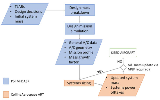To perform the technology evaluation in this work, an integrated vehicle design and systems evaluation methodology is used, which is enabled by combining the aircraft systems design and analysis capabilities at Collins Aerospace, Applied Research and Technology (ART), Ireland, with the conceptual aircraft design capabilities at the Department of Aerospace Sciences and Technologies (DAER) of Politecnico di Milano (PoliMi), Italy. The following sections first give an overview of both methodologies, before briefly describing how the two are synchronised to obtain the presented results.