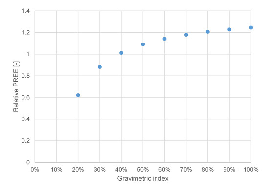 represents the Lower Heating Value of the fuel used in the considered architecture, whereas represents the usable energy of the battery, if present in the considered architecture. As PREE only evaluates the energy efficiency of the different propulsive architectures, the presented results would be different for other KPIs, such as environmental impact or cost.
