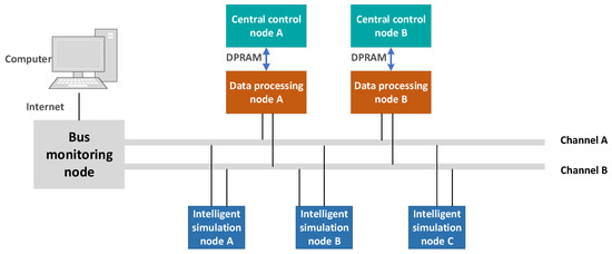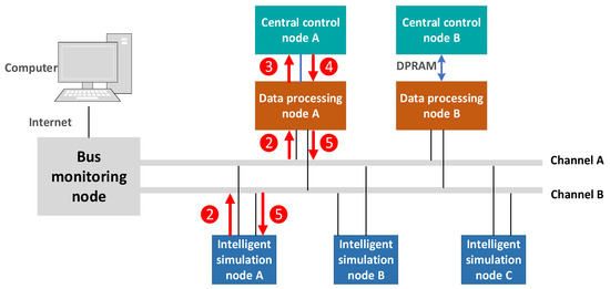 In the distributed performance monitoring system developed in this research, the architecture incorporates two distinct types of intelligent nodes: (1) simulation nodes dedicated to sub-filter computation and (2) central control nodes responsible for result fusion. The system architecture strategically positions the sub-filters within the intelligent simulation nodes to perform decentralized state estimation, while the fusion center is implemented in the central control node to integrate the local estimation outcomes. This architectural design demonstrates several significant advantages, including enhanced system flexibility, optimized resource-sharing capabilities, streamlined structural configuration, reduced maintenance requirements, and minimized computational burden on the central processing unit.