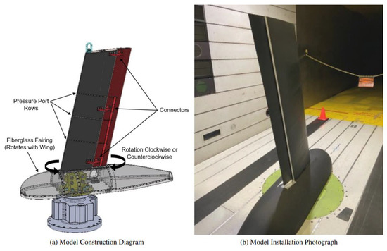 (a) SNLF wind tunnel model, (b) installed for testing in the NASA Ames transonic wind tunnel. Reprinted with permission from Ref. [48], 2023, American Institute of Aeronautics and Astronautics.