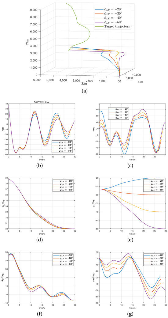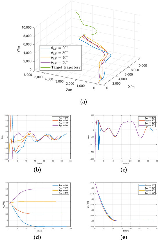 However, in actual guidance processes, the information measured by the seeker may contain noise. Therefore, we incorporated Gaussian noise into the acquisition of the LOS angle rate, with a standard deviation of deg/s. The expected LOS angle were set as for , and , .