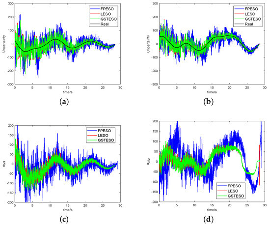 From Figure 6, it is evident that both the GSTESO and FPESO outperformed the LESO in terms of performance. Particularly noticeable in Figure 6a is that the GSTESO exhibits smaller initial observation errors compared to the FPESO, enabling it to capture the true values more rapidly.
