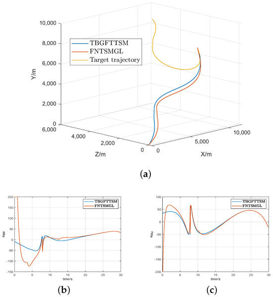 To further compare the performance of the proposed guidance law, we conducted comparisons with the fast nonsingular terminal sliding mode guidance law (FNTSMGL) mentioned in Reference [32]. The expression for this guidance law is defined as follows: