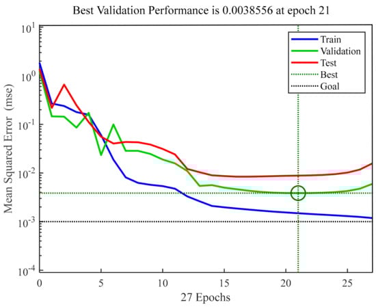 In the BP neural network, the number of initial data significantly impacts the network’s performance. Thus, 42 sets of data were derived from the FE model, BP neural network modeling is achieved through the iterative training of raw data. To mitigate the risk of overfitting, the dataset was partitioned into a training set comprising 75% of the data and a test set comprising 25%. The training set is utilized for model training, whereas the test set serves to assess the model’s performance on previously unseen data. This approach is instrumental in ensuring that the model generalizes effectively to new data. Throughout the training process, the error associated with the validation set is closely monitored. If an increase in validation error is observed while the training error continues to decline, the training process is halted to avert overfitting. This methodology ensures that the model does not inadvertently learn the noise present in the training data. The number of training iterations is set to 1000, the learning rate to 0.03, and the minimum acceptable error for the training objective to .