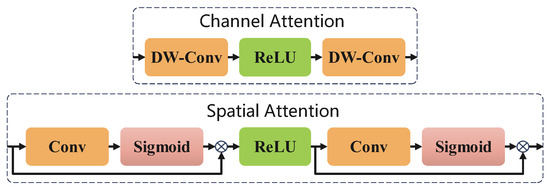 where denotes the sigmoid function, and and represent, respectively, the channel attention maps and spatial attention.The structure of the CA&SA module is shown in Figure 2.