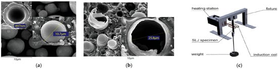 Thermally expandable particles (TEPs) (a) before and (b) after expansion and (c) testing device used by [13,14] to force disassembly.