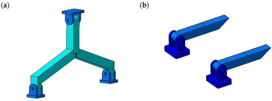 The launch unit consists of a launch box and a mounting structure (see Figure 2 and Figure 3), and the mounting structure (see Figure 4) is connected to the launcher structure by some joint structures, which can adjust the angle of the launch unit within a certain range, and these mounting structures significantly affect the dynamics of the launch unit and subsequently are the main object of study for the optimization design.