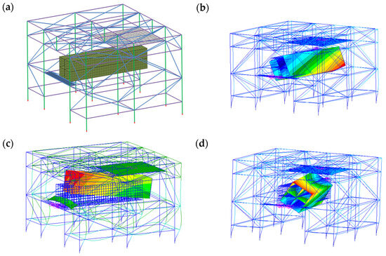 The dynamic response of structures can be calculated by the modal superposition method [11,12,13]. For example, Yang et al. [14] used the modal superposition method to calculate the response of the structural part of the rocket fairing when calculating the fluid–solid coupling response. Hu et al. [15] calculated the gust response of a flying wing with a large aspect ratio by means of the modal superposition method. Therefore, when designing the dynamic similarity, the low-order frequencies and modes of the dynamic similarity model and the original model should be similar to ensure that the dynamic similarity model can respond to the dynamics of the original model [3,9,10].
