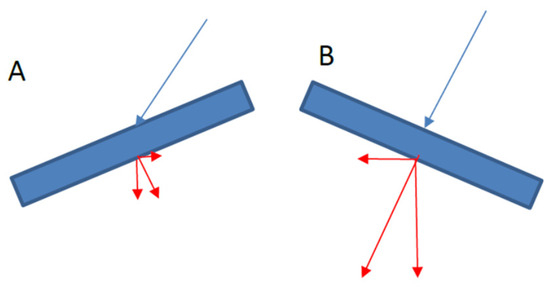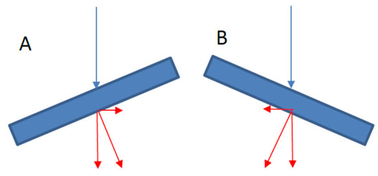 Profile view of resulting forces on canted surfaces (A,B). Radiation not parallel to wheel axis.