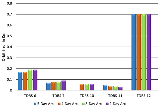 The table indicates the largest error observed between the user spacecraft’s orbit and the operational solution, along with the total errors estimated in the TDRS satellite orbits. To calculate the TDRS orbit, an unconstrained approach was adopted, whereby the a priori value of the measurement bias was specified as zero, and the covariance was deemed infinite.