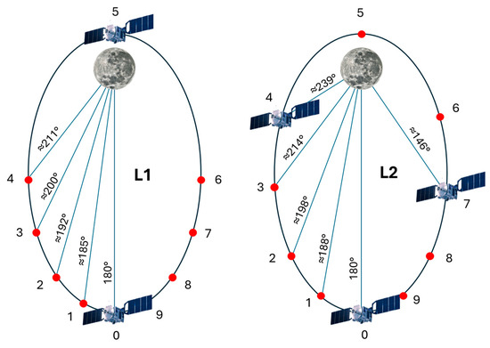 - Lu, Y.; Yang, Y.; Li, X.; Zhu, Z.; Li, H.; Dong, G. Lunar Polar Orbit Relay Constellation and Its Deployment and Maintenance. In Proceedings of the 2012 Second International Conference on Intelligent System Design and Engineering Application, Sanya, China, 6–7 January 2012; pp. 333–336. [Google Scholar] [CrossRef]