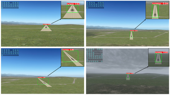To ensure that the runway is detectable from various approach angles, a runway dataset for model training is needed. Approximately 13,000 images were collected by utilizing X-Plane 11 Flight Simulator, including approaching, crossing, and landing scenarios. The selected airport was Taichung International Airport, Taichung, Taiwan, which has the same configuration as the real airport. The model was trained for 100 epochs with an image size of 640 × 640 and a learning rate of 0.001. The dataset was split into training and validation sets in a 7:3 ratio for training and testing. The GPU used in this study for training the YOLOv8 model was an Nvidia GeForce RTX 4060Ti, and the training process took approximately 5 h.