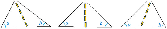 According to study [31], when , the UAV is on the left side of the runway; when , the UAV is on the right side of the runway; and when , the UAV is on the centerline of the runway. By calculating the sum of the angles, if the regression model’s predicted lateral displacement does not match this calculation, a correction will be made to bring the UAV back to the runway centerline. The threshold is set between 0 and 1, as illustrated in Figure 7.