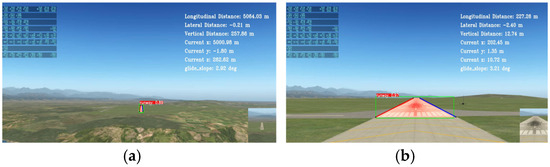 Detection results of different ranges (a) 5000 m (b) 200 m away from the target runway.