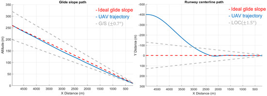 Glide slope path and centerline tracking results in Case 1.