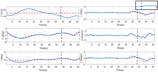 Figure 20 shows the estimated results compared to the ground truth. It illustrates the detection and localization when the aircraft performs the landing in Case 2. The angle determination mechanism activates once the UAV aligns with the runway, as illustrated in Figure 21. With a significant lateral deviation, the angles of the runway edges differ significantly from those in a straight approach scenario. The left edge angle is greater than the right edge angle. During this period, the predicted lateral distance is sufficient to determine which side of the runway the UAV is on.