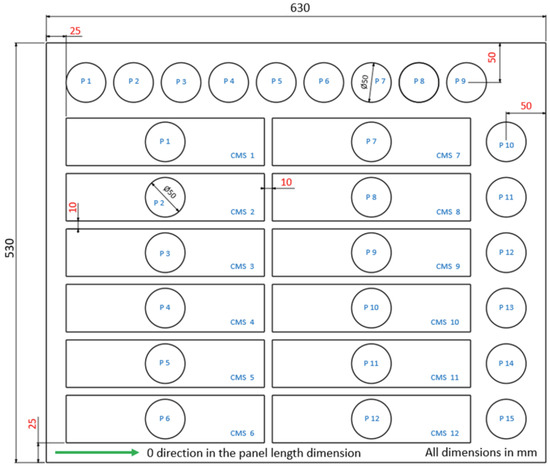 Layup and fiber content of laminate plates from the P1, and P2 materials.
