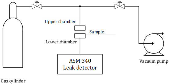 This testing procedure ensures that a reliable leak rate value for the specimen tested is measured. The leak rate value can then be used to directly compare different specimens or to calculate the permeation coefficient for each of them. The specific ASTM D1434 standard for the gas permeation of plastic materials was followed in terms of general principles, definitions, and recommendations [23]. However, the volumetric and manometric testing procedures described in the document were not suitable for a test setup that included a mass spectrometer such as the Pfeiffer ASM340. In the current investigation, the permeation coefficient can be calculated directly from the output value of the Pfeiffer instrument (in ) through the following actions: