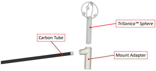 The UA is mounted to the e-Genius-Mod via a mount adapter and carbon tube (Figure 6). This solution was chosen as the carbon tube is connected to the wing adapter in the exact same way as the MHP. As a result, both probes are compatible with each other’s mounting points. The installation on the e-Genius-Mod is described in detail in the next chapter (Section 2.3).