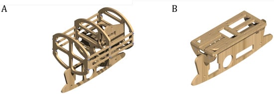 Adapter concepts placed upon the additional rip: (A) single adapter, with capacity for both probes; (B) one of the double adapters, only able to hold one probe.