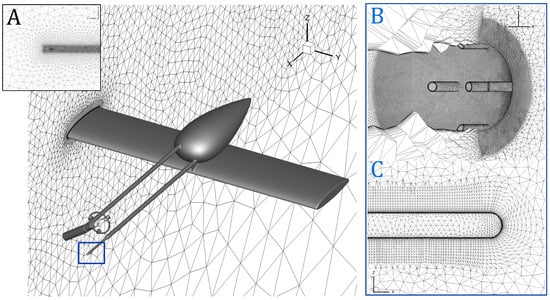 The single-adapter concept combines both probes into one single wing adapter. By placing both probes close together, the local flow conditions can be measured twice, improving the comparability of each data set. It is thus critical to chose the right placement of both probes: if the distance between the MHP and UA is too small, flow interference may cause unusable data. In case the distance is too large, the concept of local flow measurements cannot be realized. Additionally, the adapter would probably become too large and thus difficult to realize. Consequently, before conducting any flight tests, the correct probe placement needs to be verified. This was achieved by first running CFD simulations (Section 3.1) and subsequently conducting wind-tunnel tests (Section 3.2).