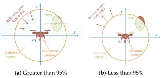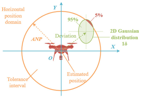 To accurately calculate the navigation performance radius, we adopt the circular error probability. Thus, the probability of the UAV’s actual position falling within the error circle is represented as