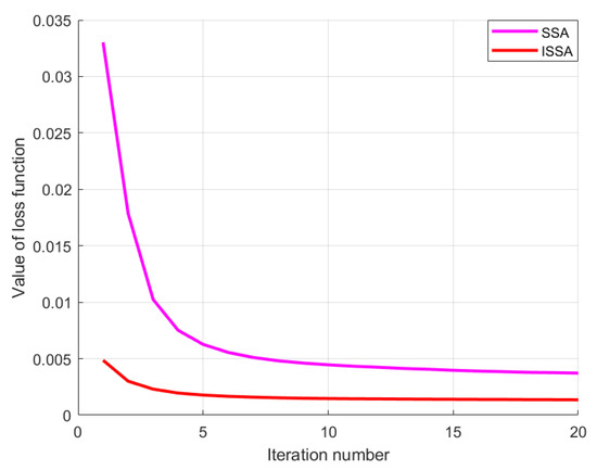 To evaluate the accuracy of the ANP value calculation for the rotorcraft logistics UAV, we adopted the probability of the UAV’s actual position falling within the error circle as the metric. In the experiment, to fully verify the advantages of the proposed method, traditional methods, the bisection method, and SSA were used as comparative approaches. The parameters for both SSA and ISSA were selected as follows: PD = 0.2 n, SD = 0.1 n, R2 = 0.8, , with an iteration of 20 and an initial population of 20.