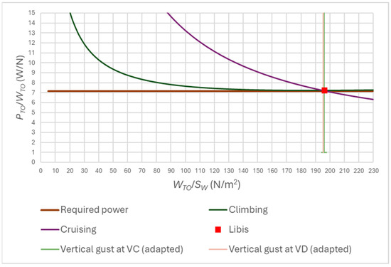 Figure 2. Design requirements introduced in the relationship between the power-to-weight ratio and wing loading.