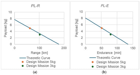 Figure 8. (a) Payload vs. range diagram; (b) payload vs. endurance diagram.