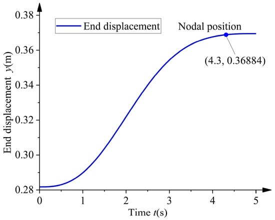 As shown in Figure 10, the trajectory of the end of the robot forearm gradually levels off after 4.3 s, with a slope of less than 0.1. As such, 4.3 s was chosen as the node for two segments of uniform velocity movement. The first segment runs from the starting point to the node position, and the uniform velocity time interval is [0, 4.3]. The second segment runs from the node position to the end point of the barrier crossing, and the uniform velocity time interval is [4.3, 5].