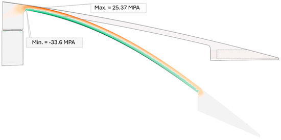 Maximum/minimum von Mises stress on the ETM after morphing with an optimum upper surface thickness.