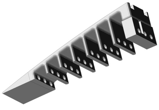Figure 13 shows the ETM modified design after finding the optimum number of teeth, their optimum thickness, the optimum upper surface thickness, and the suitable fixation to the wing box.
