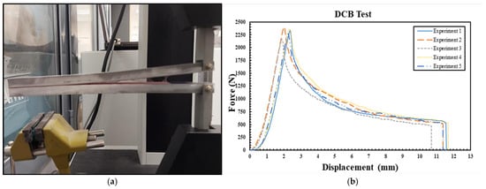 Application of DCB test (a), Force–displacement (F-D) curve for DCB tests (b).