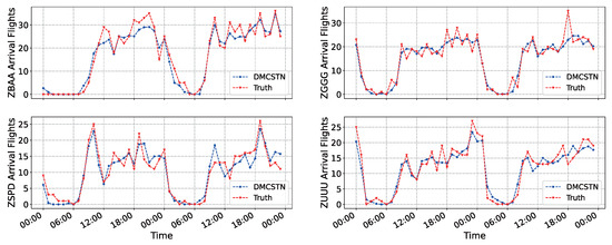 - Although the transition patterns of the arrival traffic flow vary among the four airports, the proposed DMCSTN is still capable of capturing the flow trend, especially at the inflection points. It is hypothesized that the capability of extracting prior operation information improves the distinguishability of different airport traffic time-series data.