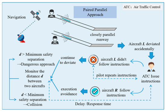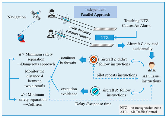 The global civil aviation industry remains in a phase of rapid growth, with the continuous increase in air traffic volume leading to intensified airspace congestion and frequent delays. To accommodate the continuously increasing air traffic volume while considering land resource constraints, the surrounding airport environment, and overall development trends, the construction of parallel runways has become a key trend in civil aviation airport development worldwide [1]. Meanwhile, to ensure the safe operation of parallel runways, regulatory bodies such as the Civil Aviation Administration of China (CAAC) and the International Civil Aviation Organization (ICAO) have established operational regulations for the simultaneous instrument operations of parallel runways [2,3].