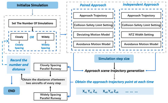 Experimental scenario of simulation: (a) simulation of the independent approach scenario; (b) simulation of the paired approach scenario.