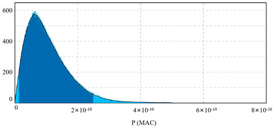 As Equation (15) is the product of two probabilities that are both estimated with a certain degree of uncertainty, involves the product of two estimators, and the resulting quantity is a random variable. The estimated value of , denoted as , is derived from a Bernoulli trial, where the trial criterion is defined as . Therefore, the estimate of the probability of success can be described thanks to the CLT with a random variable following a normal distribution, where