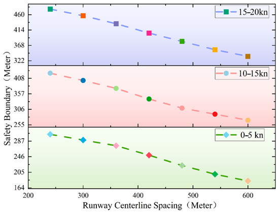 As shown in Figure 21, a comparative analysis of runway spacing and the speed difference between the leading and following aircraft indicates that, in terms of the contribution to the collision safety threshold, the speed difference between the leading and following aircraft is the primary influencing factor, followed by the runway centerline spacing.