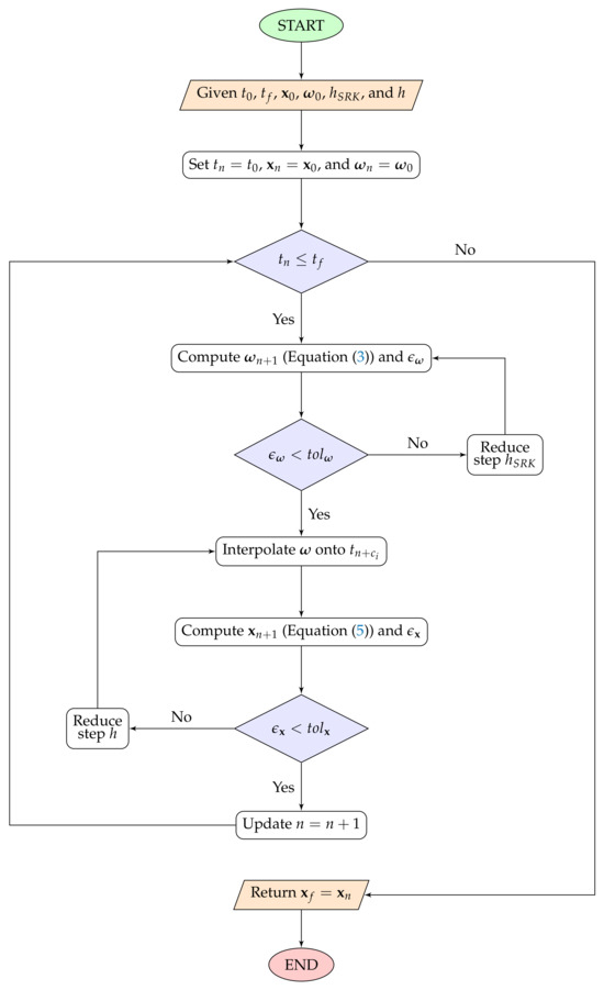 - the error is estimated. If it exceeds a prescribed tolerance, h is reduced, exploiting an appropriate adaptive time-stepping algorithm and the procedure is restarted from Step (3).